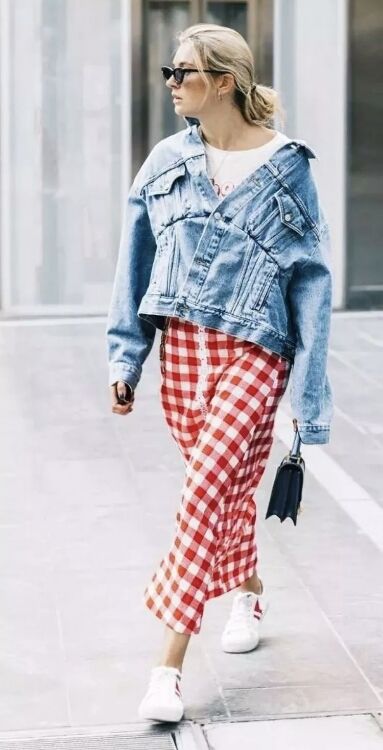 牛仔外套搭配下装就看个人喜好,所以挑款就特别重要。