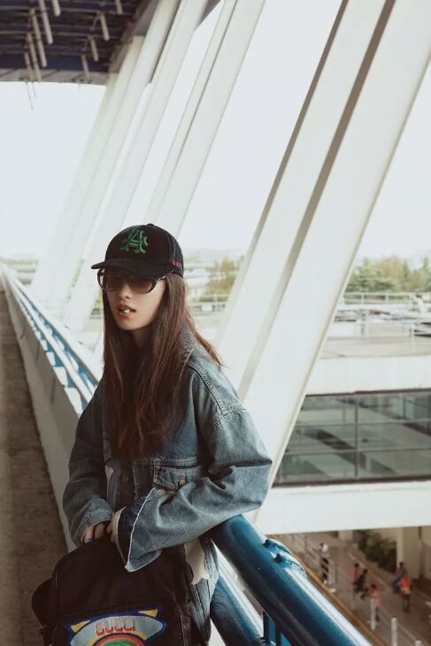 倪妮最近在机场被拍到身穿GUUCI拼贴牛仔外套,头戴棒球帽。