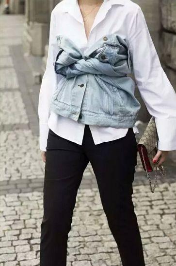 但现在是换季,白衬衫即使再仙,也该做内衬了,搭配牛仔外套就很耐思~