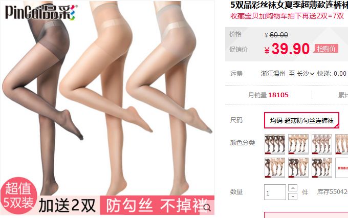 今日推荐:超值7条装品彩防勾丝超薄款隐形丝袜