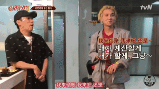 到了要结算吃饭费用的时候,刚开始这顿的设定便是殷志源买单,结果虎东冒出来说“我来吧我来吧,把我的卡给我”。