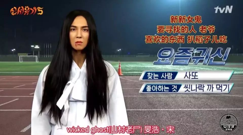 宋旻浩选择了女鬼,韩国的代表鬼神之一,大夏天的长发飘飘会带来闷热的心情,吃饭的时候也指不定会吃进更多头发,不过扮相意外的很秀气合适。