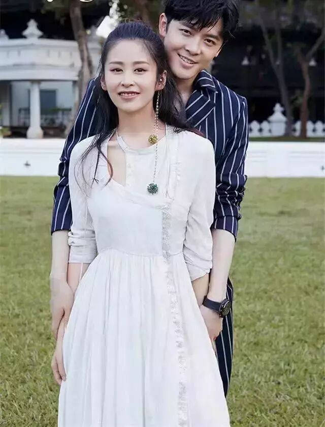 颖儿倚靠在付辛博怀中微笑,两人越来越有夫妻相了。颖儿身穿白色长裙,优雅美丽,付辛博则身穿深蓝色西服套装,帅气有型,也是配一脸的样子。