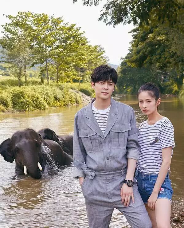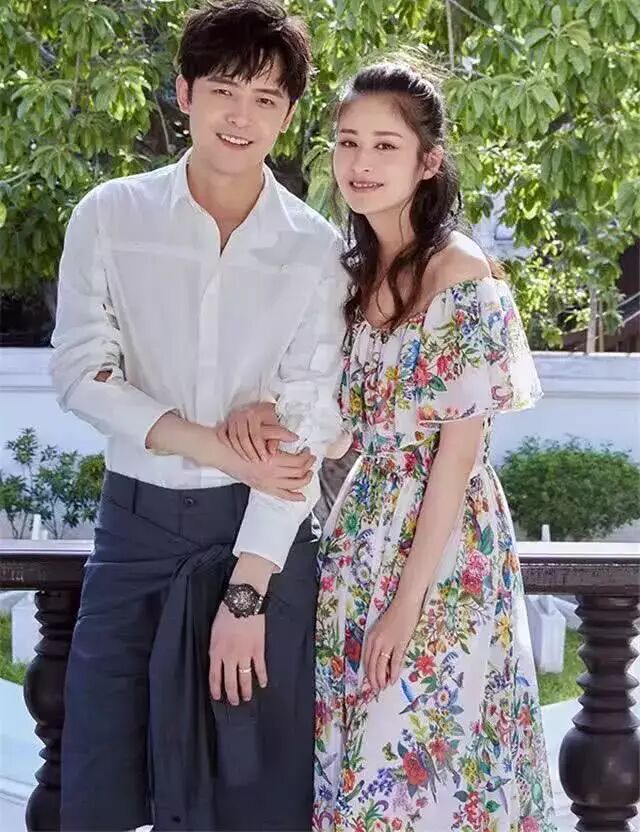 这张照片中的付辛博和颖儿,看起来有些韩范儿,阳光下两人冲着镜头笑得一脸幸福。