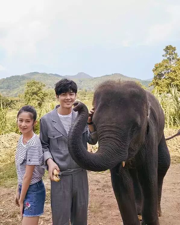 付辛博伸手抚摸着大象,温柔又暖心。
