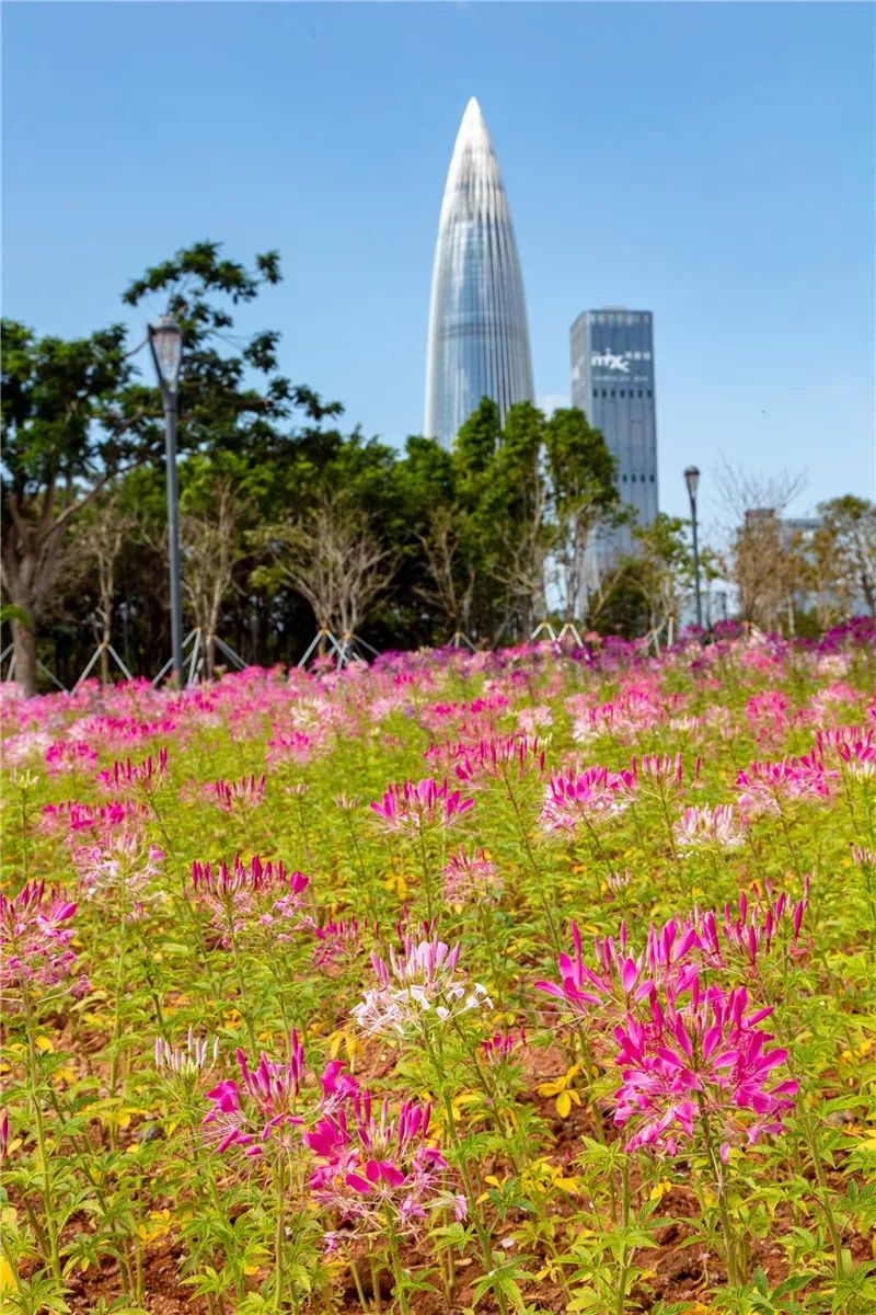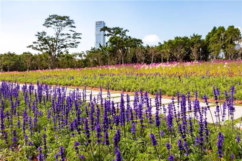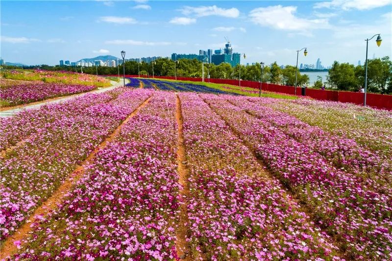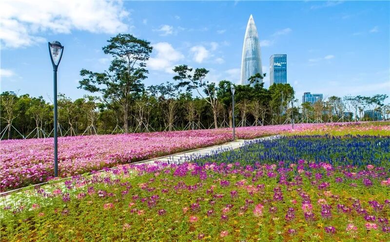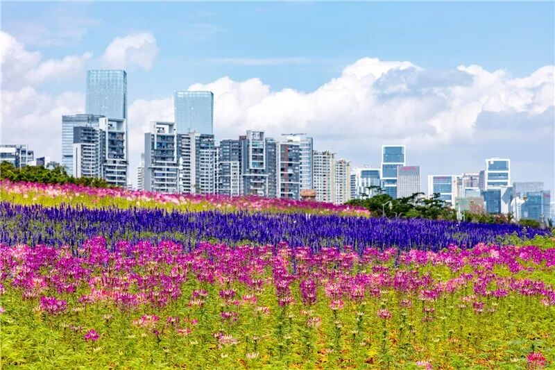 经过前期精心规划、设计和施工,流花山花海景观已于今日(2月20日)正式向市民免费开放。以醉蝶花为主题花卉、配植波斯菊、鼠尾草的五彩花海,在深圳湾畔的城市建筑景观背景衬托下,一派都市田园风光景象;