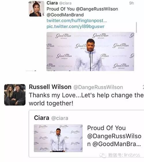 Ciara在推特上为男友感到自豪,Wilson转发爱人CiCi的赞美,说一起来改变世界。