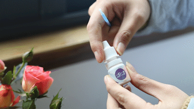 ▲拧开,微微倾斜瓶子,轻轻捏出药水,浸湿棉棒~