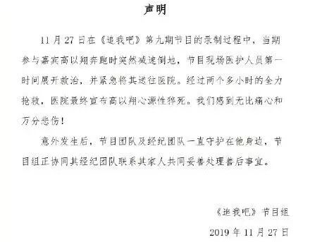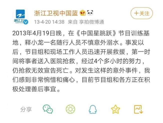 在悲剧发生后,浙江卫视也发声明,并且将事件的来龙去脉都阐述了一遍,也深表遗憾和惋惜。