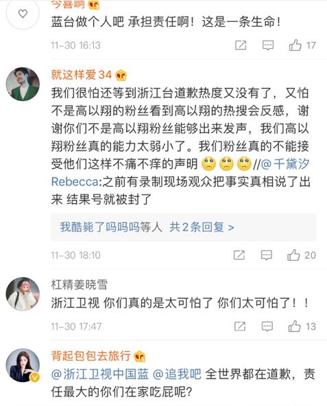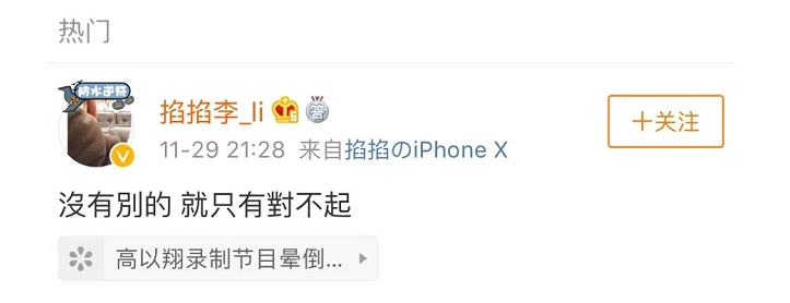 11月29日,在高以翔离开三天后,网上终于出现了一份对于高以翔离世的道歉。