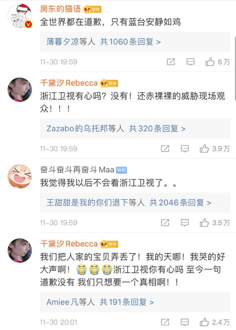 而随着助理和老板的纷纷道歉表态,网民对浙江卫视迟迟没有给出道歉愤怒了。