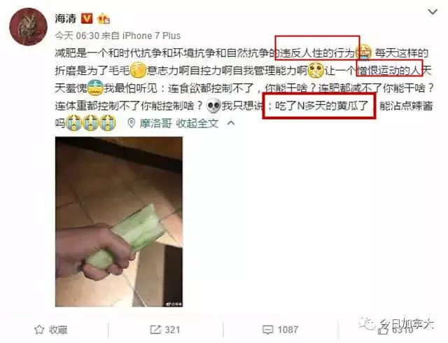 ▲海清之前为了减肥只能啃黄瓜,在网上吐槽:违反人性。但是减肥其实真的不用这么痛苦。