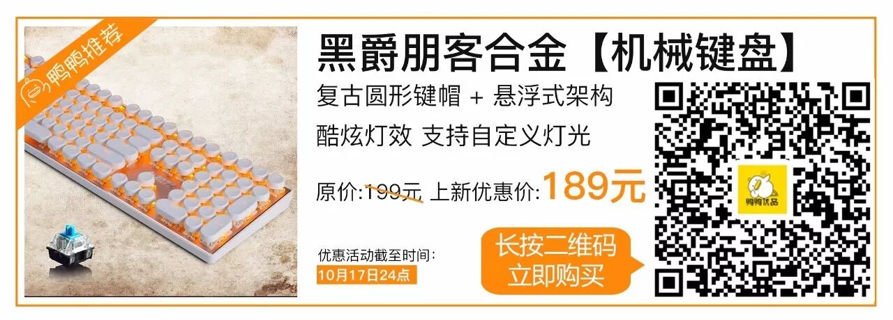 玩电脑游戏的都知道不仅有游戏专用鼠标,还有游戏专用键盘!今天推荐的第二款装备就是下面这个黑爵朋克合金机械键盘,双色酷炫朋克风,还带发光的,嘻嘻,想买回家藏在被窝里自己欣赏,我的键盘会发光也。