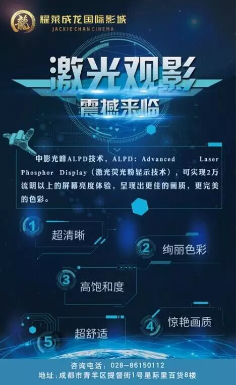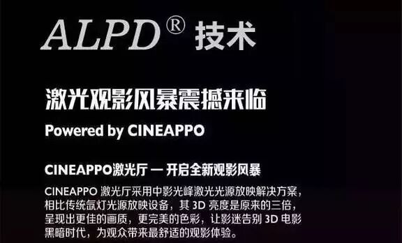 中影光峰ALPD技术,ALPD:Advanced Laser Phosphor Display(激光荧光粉显示技术),可实现2万流明以上的屏幕亮度体验。
