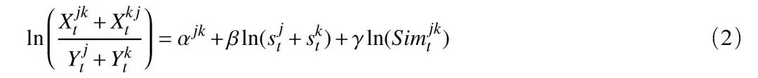 其中,αjk表示每个组对国家(coutry pair)的固定效应,sjt和skt分别表示组内国家j和k的GDP占世界GDP比重,。