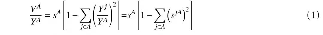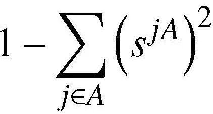 其中,VA表示A中的所有国家j之间的双边贸易总额,YA表示A中的所有国家GDP总额,Yj表示A中的国家j的GDP,sA表示A的GDP总额占世界GDP的比重。
