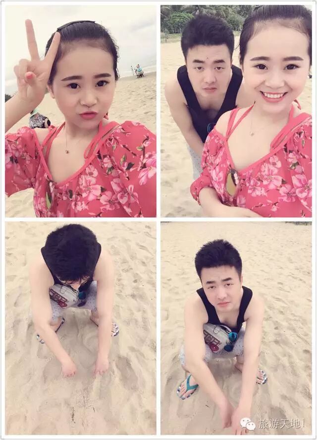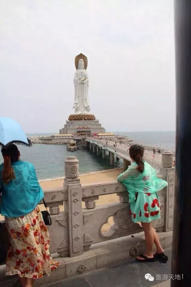 以前和老公不认识的时候我们两个都在南山寺的同一个地方拍照了的,这是还不认识的时候,拍的照片,所以我们就说一定要再去一次三亚,在南海观音面前合照一张,终于还愿了。这次无意之间被一个当地人带我们走的小路,走到南海观音的旁侧去见观音的,给了60块钱,不仅见到了观音,还见到了目前我见过的最大的浪,沙滩边上还有卖首饰品和椰子的当地人,买个椰子喝了汁还可以吃肉,很是惬意。