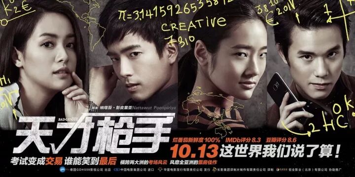 《天才枪手》又名《模犯生》是根据真实事件改编,讲述了天才高中生小琳在国际会考上跨国为富家公子作弊来牟取暴利,并与另一名记忆力极佳的天才学生班克,策划了一场跨时区的完美作弊。