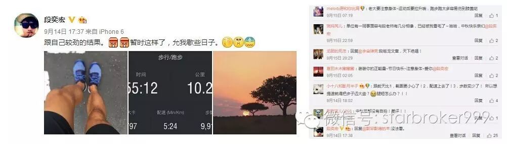 近日,许久没更博的“硬汉男神”段奕宏在微博上连续晒出几张自己刚刚运动过后的照片,并附文道“跟自己较劲的结果,暂时这样了,允我歇些日子。”此微博发出后,迅速引来了网友们的热议,纷纷评论道“老大,要注意休息,别让自己太累啊、老段,敢情你这是跑出新纪录,求正面照、男神,好魄力和耐力呀,向你学习,么么哒。”