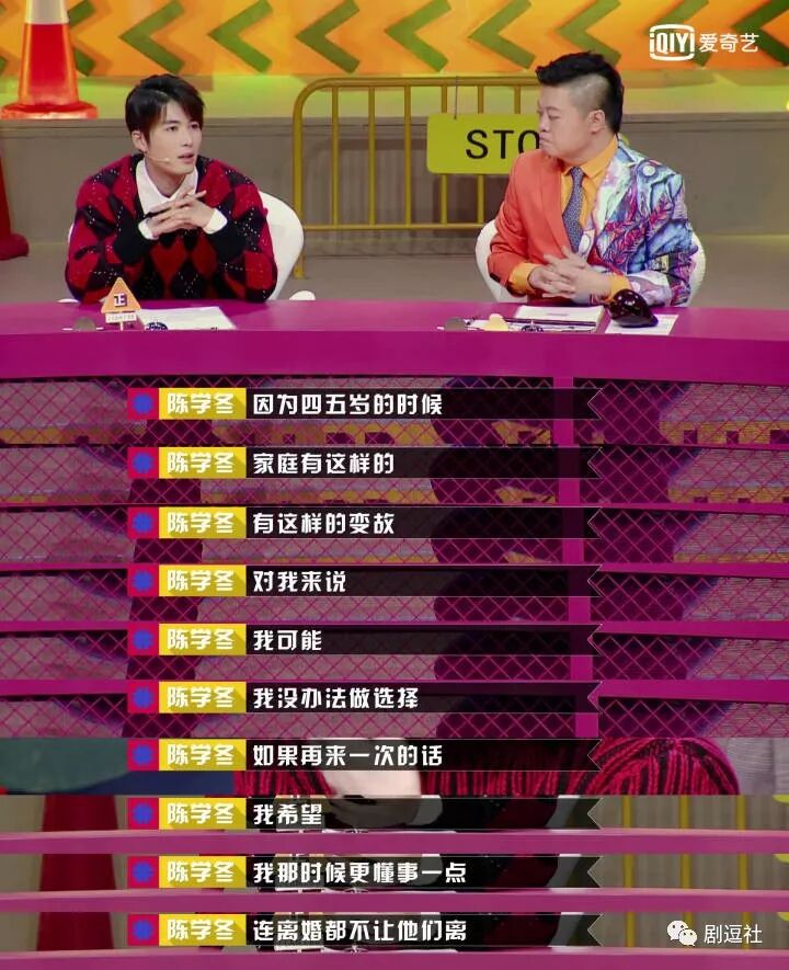 在讨论辩题要不要阻挠父母再婚时,陈学冬很坚定地说自己会阻挠。