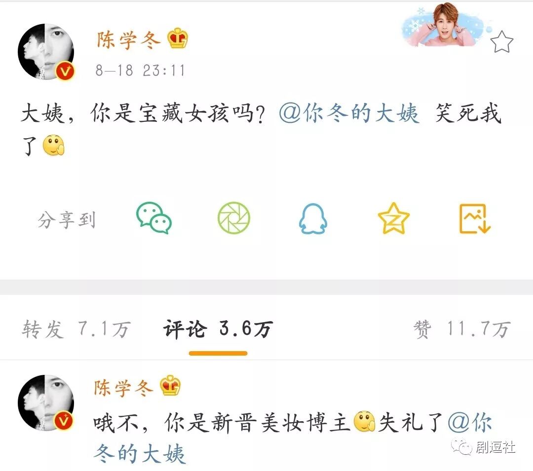 对粉丝陈学冬怼起来也是毫不客气,在小号上经常和粉丝相爱相杀。