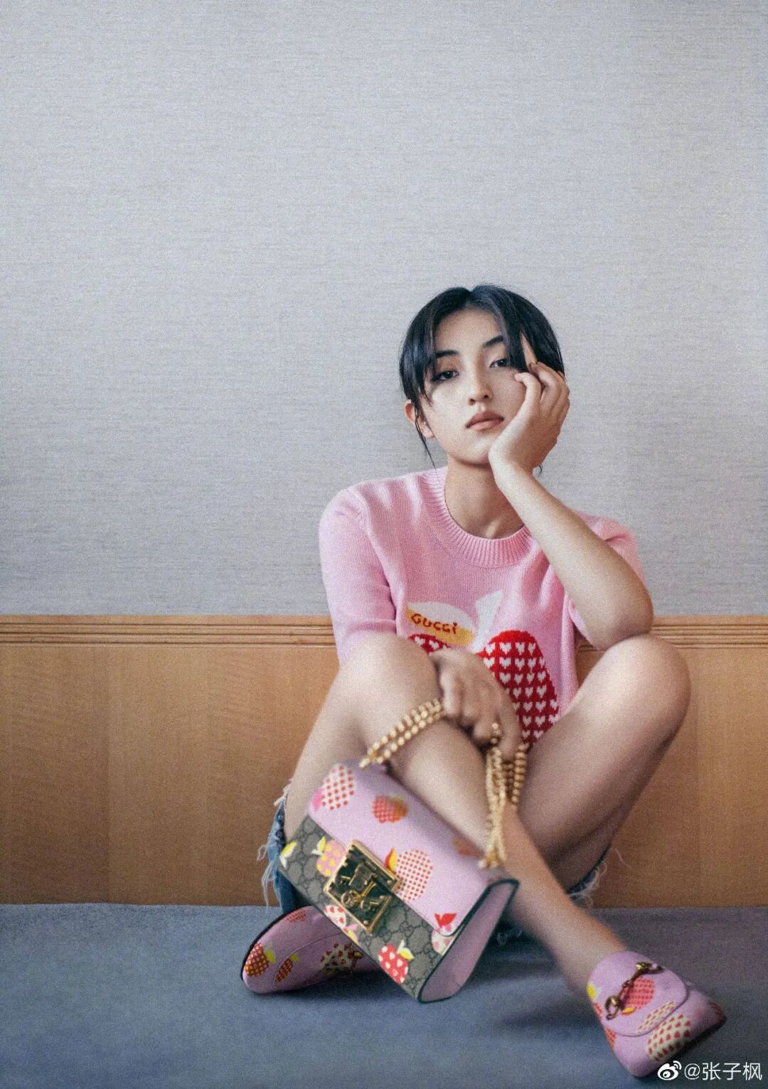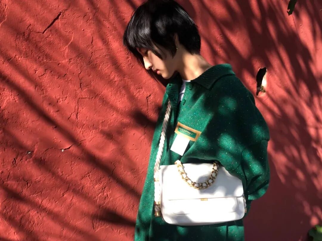 即便是Prada、Chanel、Gucci这些大牌手袋上身,也并不会感到冲突,反倒被她本人的气质中和得低调不少,满是少年的气息。
