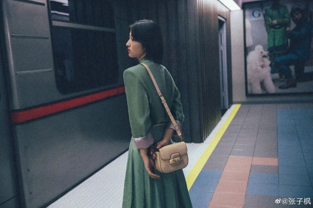 奶奶风的复古针织开衫除了满足初秋对于日夜着装的需求,还可以像张子枫这样充当披肩,拍照的时候随意披起来,也是十足的文艺腔调。