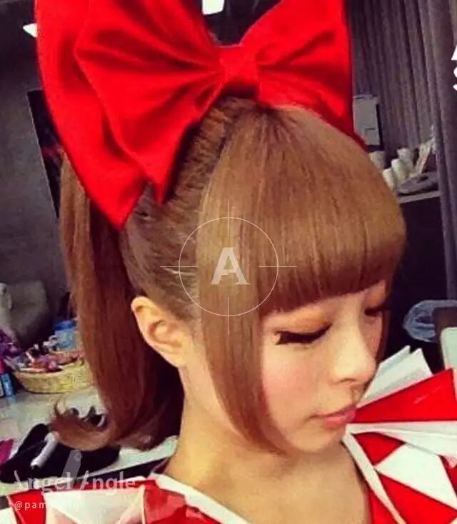她经常选择以齐刘海为主的假发造型。
