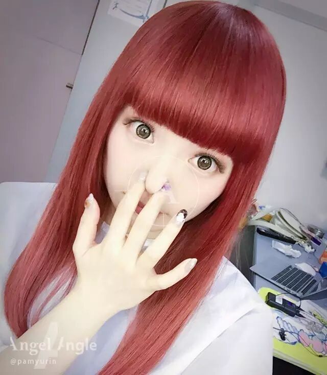 能够突出白暂的肤色和精致的脸孔。粉红色的发色,