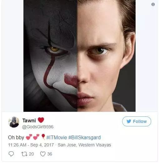 Bill现在真的蛮红的,许多看了《小丑回魂》的妹子都表示虽然电影很吓人,但情不自禁被他吸引……
