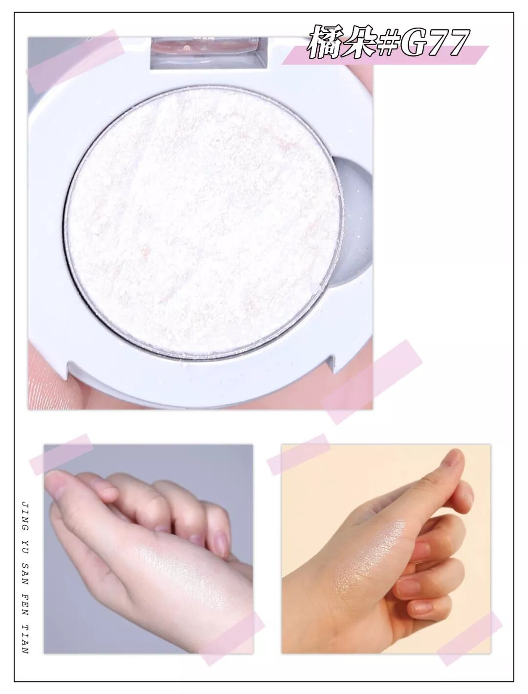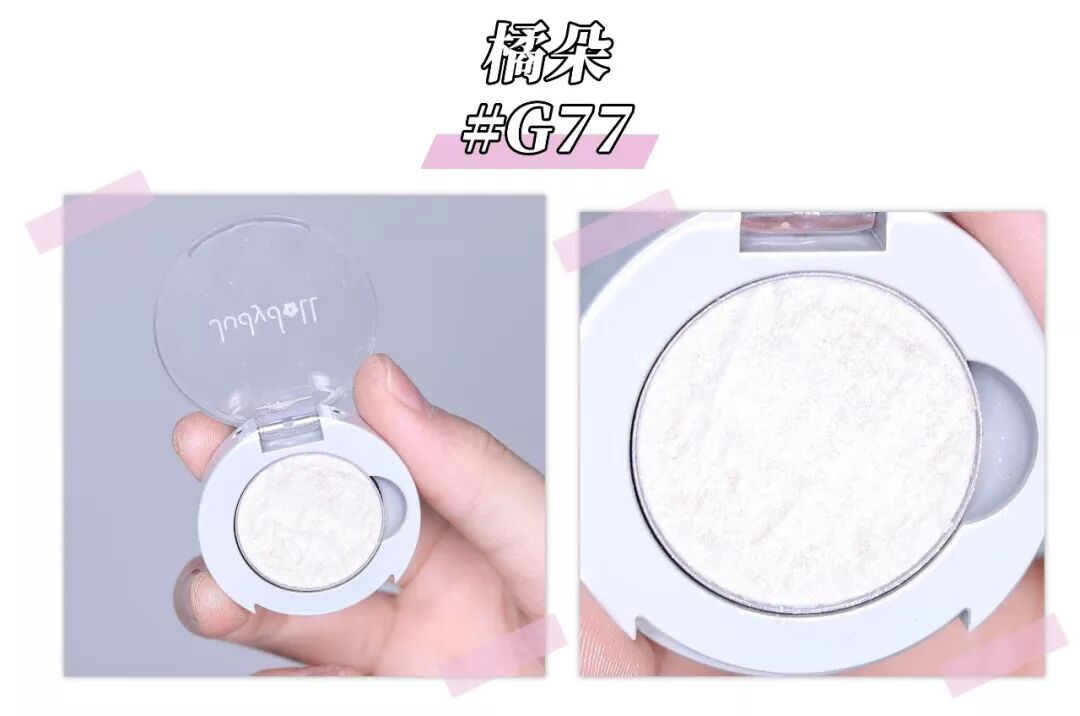 橘朵#G77是一块白色细闪珠光,不太日常,叠涂眼影、提亮眼角会比较惊艳。