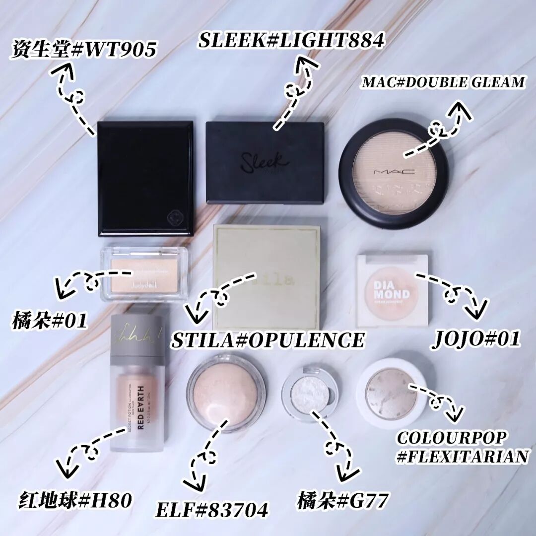 白色系高光是比较常见的,但不同质地也会有区别,适合使用在脸上不同的部位。