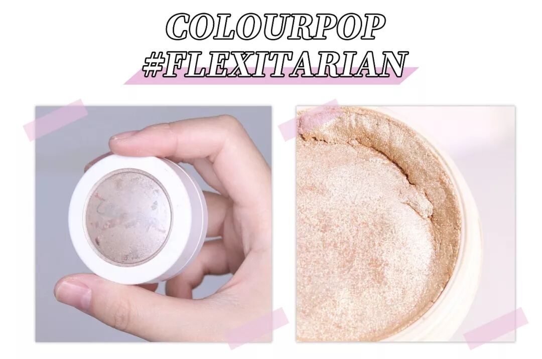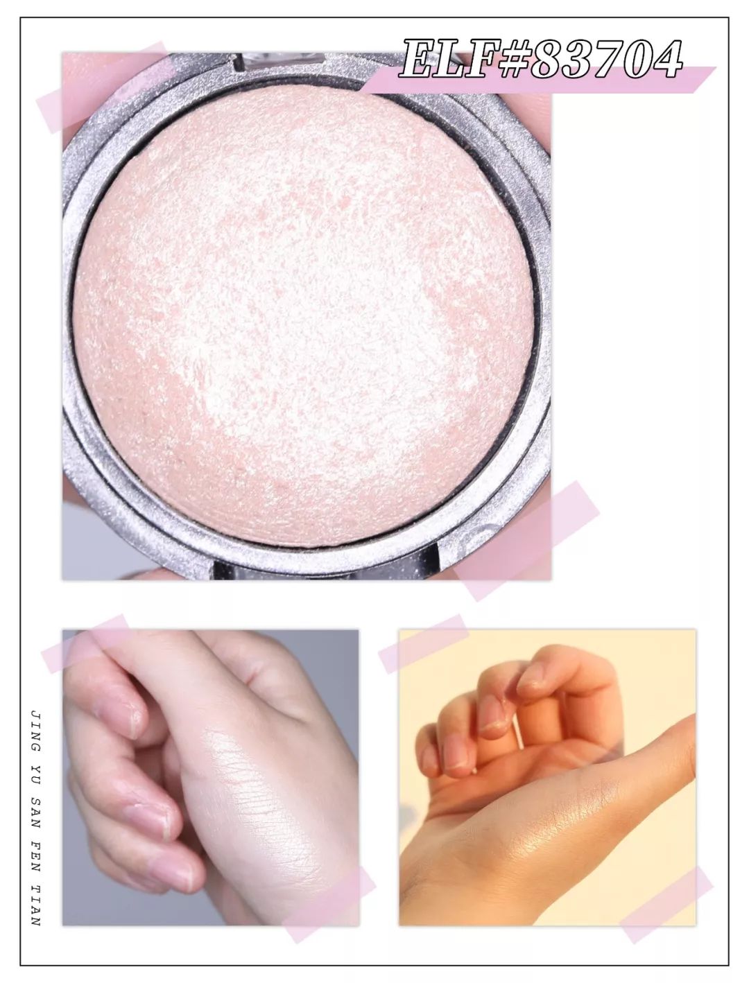 这块是烘焙高光,质地比较硬,取粉有点困难,光泽度是比较显眼的,是那种带点闪的高光,但是会显毛孔。