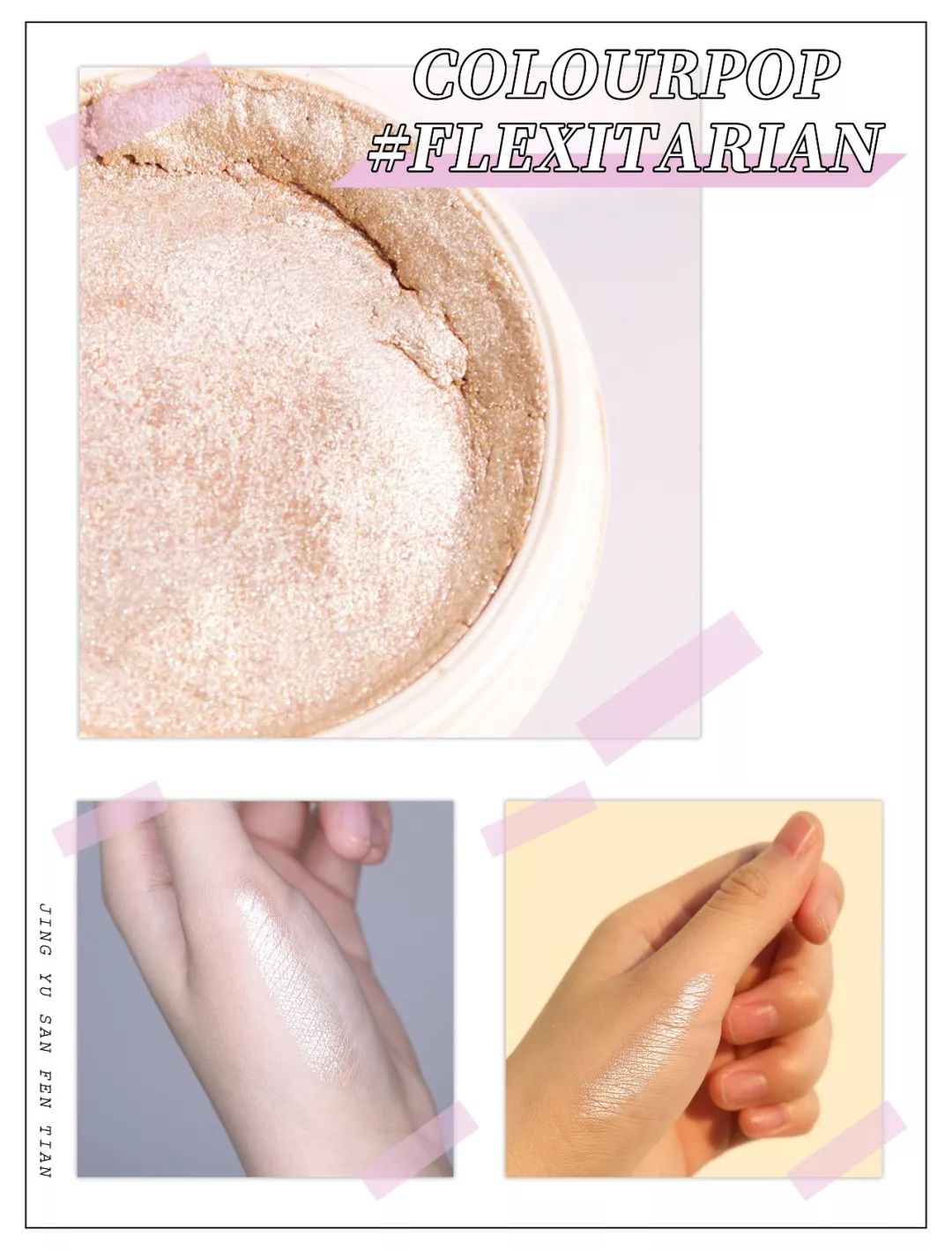 这块高光用得好了波光粼粼,用不好的话会有一丢丢廉价感,因为它是水光带点细闪,使用面积太大会浮夸。而且土豆泥质地会显毛孔,介意者慎入。