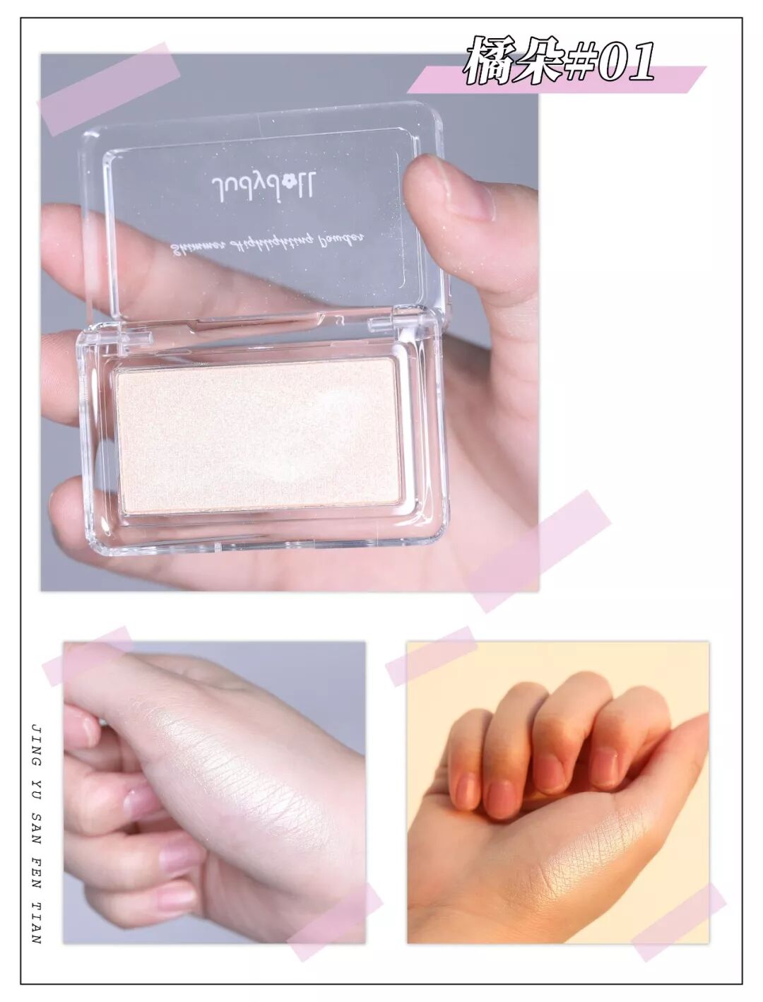 这块是很有高级感的高光,粉质的质地决定它不会显毛孔,尤其适合想要水光感却又怕显毛孔的油皮妹子,用脸上会显得皮肤很通透细腻。