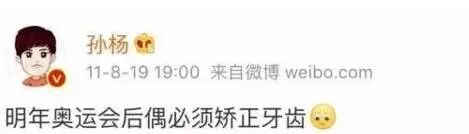 国民男神孙杨因为牙齿不齐,曾被媒体调侃过像鲨鱼牙,孙杨自己也说过对自己外形基本满意,除了牙齿,还在微博发下誓言,说要赶紧矫正牙齿↓↓↓