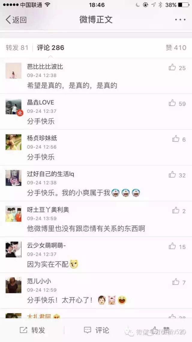 分手的消息一出,基本上整个网络到处都是喜大普奔,普天同庆的状态,大家高兴得简直跟过年似的,还出现了祝两人分手的话题