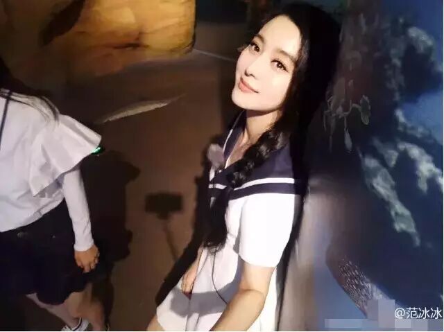 6月18日,“大黑牛”李晨在微博上PO出一套范冰冰身穿学生裙、头扎麻花辫的清纯照。