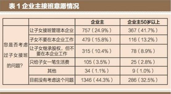 而企业主中年龄在50岁以上的占40%,随着第一代企业家年龄的增长,考虑企业接班换代的企业家越来越多,而且大多希望让其子女接班,且年龄越大,越希望子女接班。