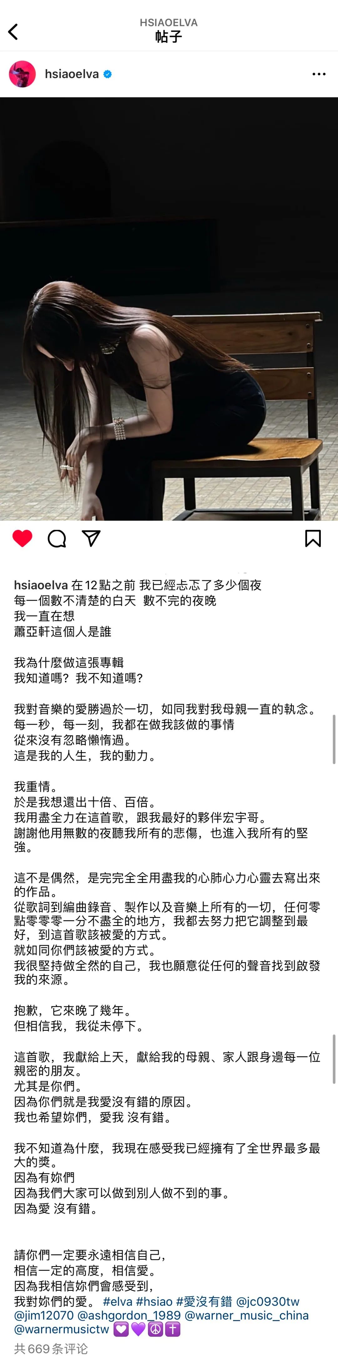 新歌发行当天,萧亚轩在社交平台写下了自己的创作心路历程,真诚到让人心疼。