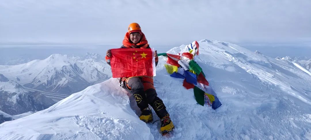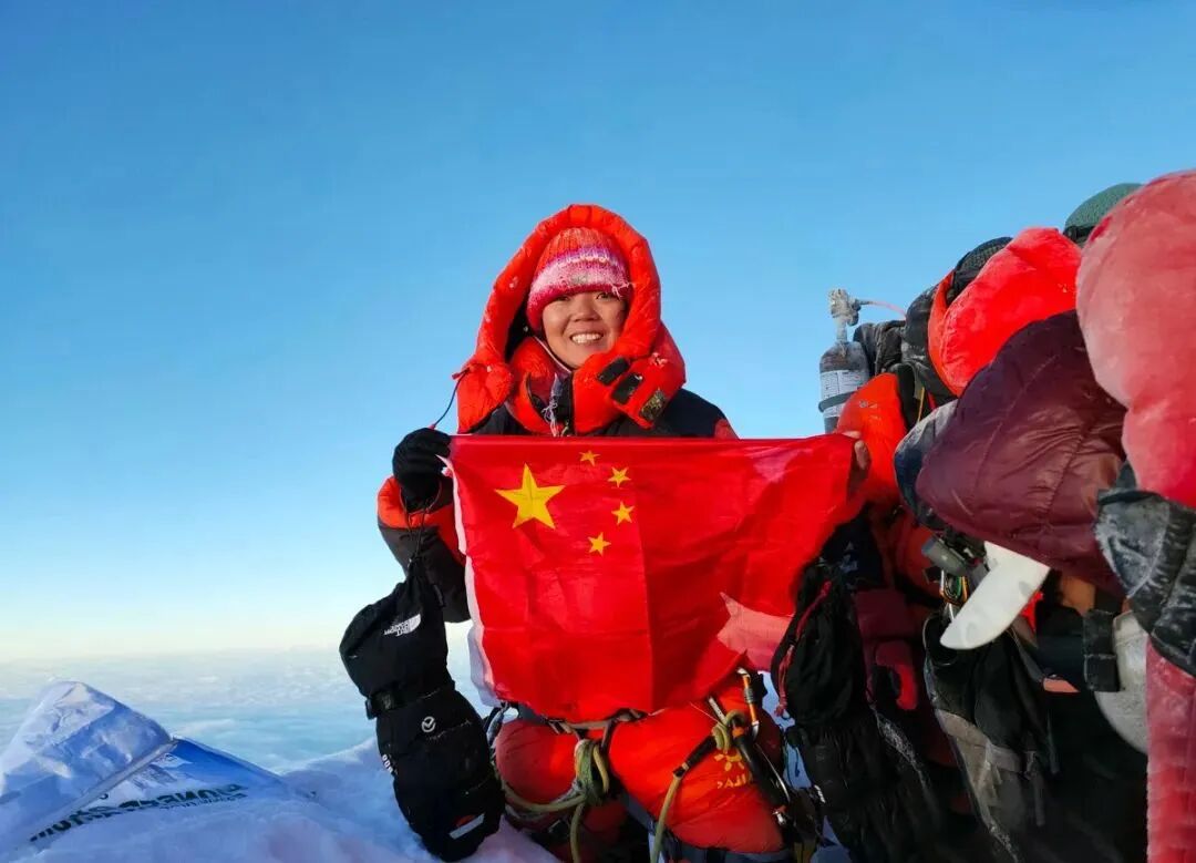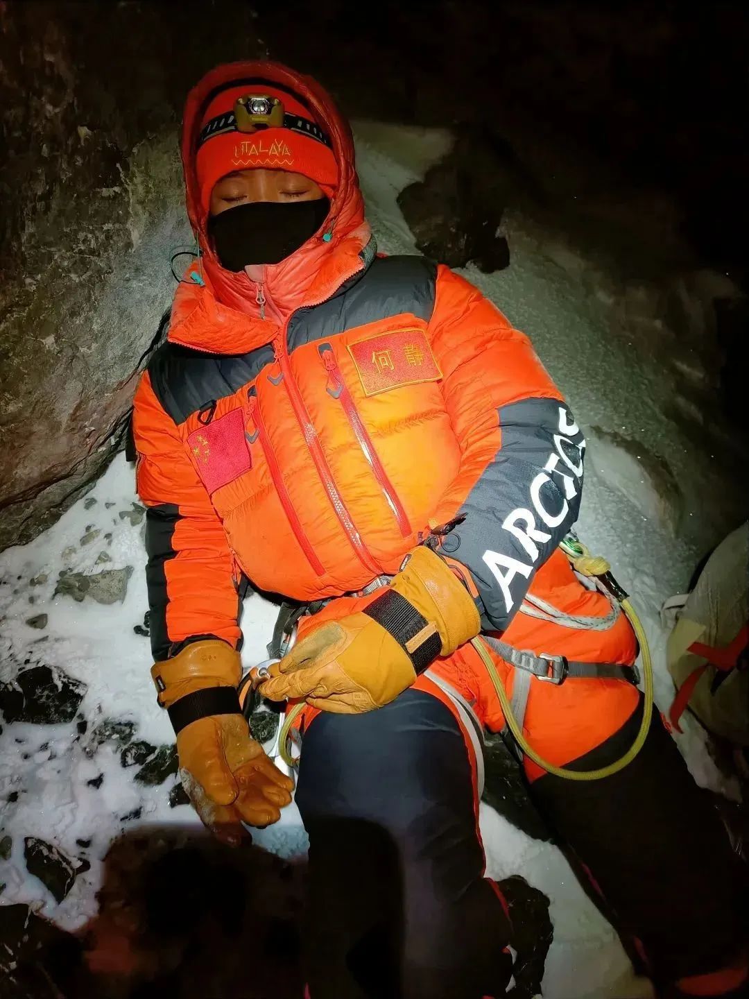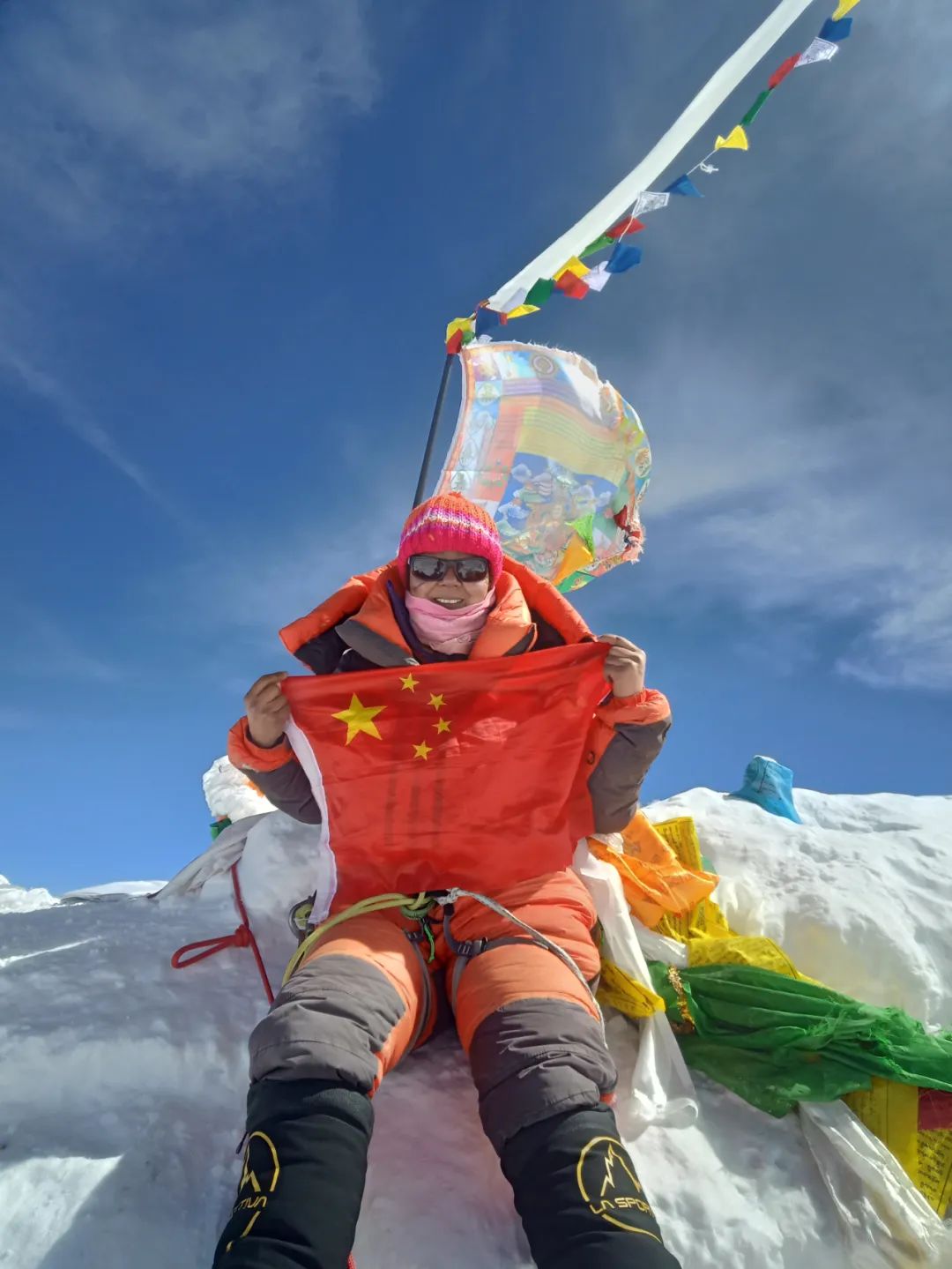 在她身体的左边,是尼泊尔,身体的右边,就是祖国的境内。此时,她还不知道自己何时才能回国,从2021年4月抵达尼泊尔,一直到2022年5月14日登顶珠峰,她因为疫情而滞留尼泊尔超过1年了。