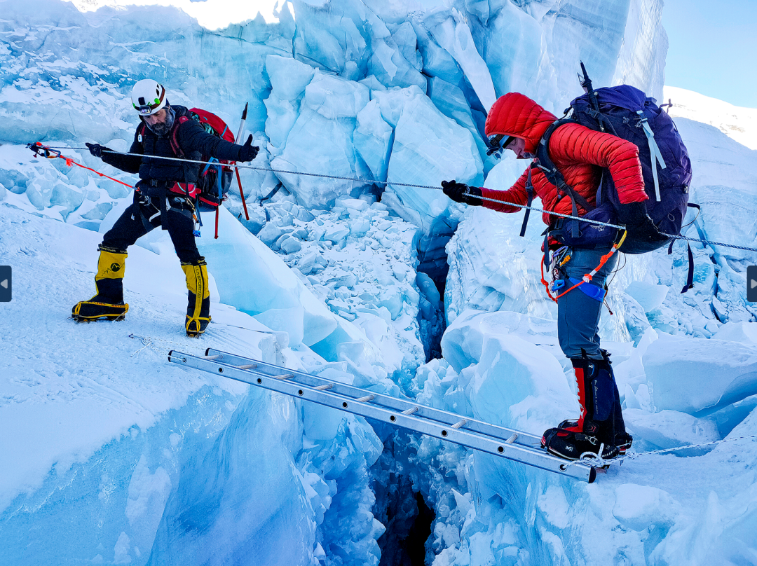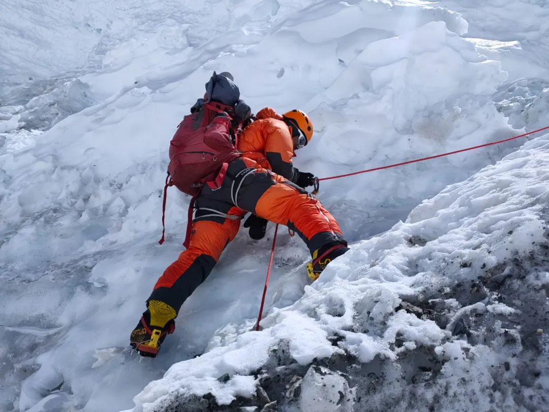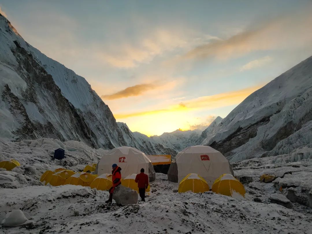 为了避免像2021年一样错过窗口期,何静在从加德满都徒步抵达大本营后,当即第二天就去了二号营地进行海拔适应。对于普通攀登队员,珠峰攀登只需要进行1-2次高海拔适应性拉练,最高不会超过海拔7000米,但无氧攀登的何静四次过危险的昆布冰川,把从C1到C4的营地都住了一遍。