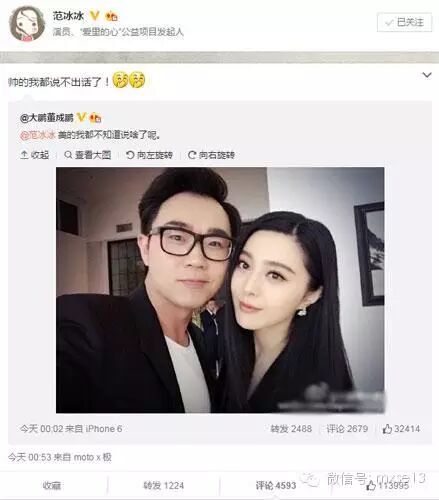 心疼李晨!大鹏范冰冰深夜晒照互夸 明星那些事 内地男星 2016-03-17 20:18:53 190 创作不易,用心坚持,欢迎请BaGua喝几杯爱心咖啡!打赏并支持本文 打赏并删除本文 范冰冰微博截图今天(3月17日)凌晨,大鹏在微博晒出一张自己与范冰冰的合影,并留言称赞范冰冰:“美的我都不知道说啥了呢。”,随后范冰冰转发该微博,回应大鹏:“帅的我都说不出话了!”照片中大鹏与范冰冰似乎处于一个聚会当中,二人都身着黑色外套,贴脸自拍,显得格外亲密。对此,有粉丝留言“李晨还有30秒到达战场!碾碎大鹏”,“冰冰姐,晨哥吃醋啦”,“李晨你怎么看”。 创作不易,用心坚持,欢迎请BaGua喝几杯爱心咖啡!打赏并支持本文 打赏并删除本文 感谢您的支持鼓励,我会继续努力的!文章地址:用户邮箱:打赏金额:USDT 请输入数字点击”去打赏“,即可进行打赏支持本文章哦 李晨 About the Author 明星那些事 功能介绍:最前沿的娱乐新闻、最火爆的明星爆料、各种娱乐圈内幕!一切尽在明星那些事! 官方认证:湛江市云领网络科技有限公司 Related Posts 关晓彤米兰时装周造型被疯狂吐槽,网友称“尘土飞扬” 2019-09-21 22:56:45 刘丹公开谈小糯米近况,已经没那么粘人,在教育方式上与杨幂一致 2019-08-26 22:58:09 李维嘉龙丹妮上热搜,何炅老婆被曝光?百度果然知道的比我多! 2019-06-10 22:39:37 48岁胡兵恋情曝光?与神秘女约会,对方频频投怀送抱胡兵态度自然 2019-06-05 22:04:56 吴君如12岁女儿近照曝光,大长腿抢镜,身高快要赶超老爸陈可辛 2019-04-08 12:37:43 发表评论