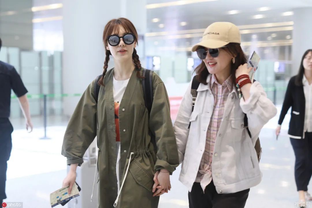 出现在机场这个时候头发也是稍微带了一点颜色,显得整个人的肤色看起来都是比较白的那一种。最主要的是这个时候头发还弄成了两个小辫子,看起来就像是那种邻家的小姑娘一样,看起来特别可爱。