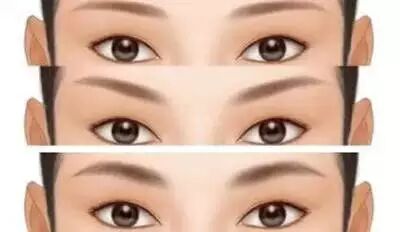 眉毛的前三分之二都是平直,到了后三分之一上部线条平缓向下,下部线条依然平直。