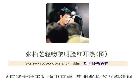 传出了两个人合作是戏假情真,张柏芝吻黎明脸时,对方是脸红耳热。并且介入了“东芝恋”,也是陈晓东和张柏芝反目成仇的原因。
