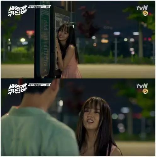 於昨日(19日)在有线台tvN播出的月火剧(周一、二播出)《打架吧鬼神》,金所炫所饰演的高中生女鬼「金贤智」喝醉酒啦!她穿著粉红色连身裙走在街上摇摇晃晃的,「朴奉汃」(玉泽演 饰)跟在她后头,听她絮絮叨叨…