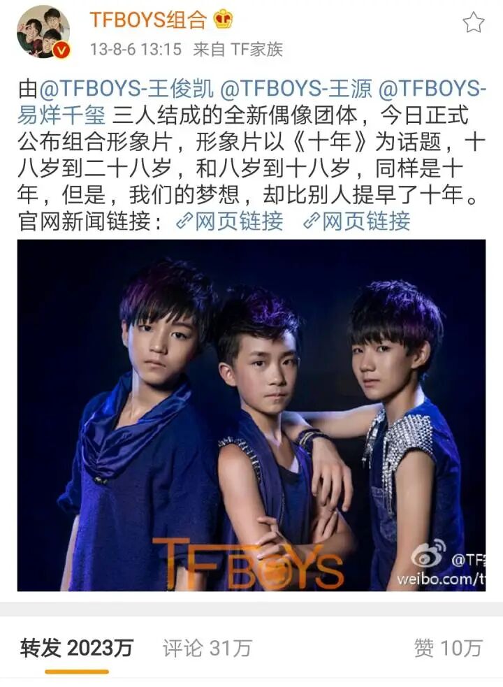 这一天不但被纪念为中国第一个网络明星——TFBOYS出道的日子,也奠定了日后粉丝经济的基础:刷榜、专辑、演唱会及周边,围绕偶像所进行的一切服务,都自然而然的由粉丝们买单。