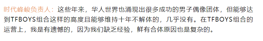 按照原本的计划,练习生们会等到成年后再成团出道,但随着流量的上涨,时代峰峻意识到互联网造星的强大力量,他们决定趁热打铁,找来擅长跳舞、并有过成团经历的易烊千玺加入TF家族。