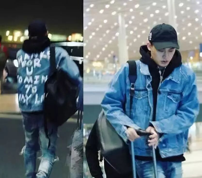 欧豪在机场被拍到牛仔外套背后的英文:
